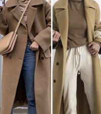和驼色一个“家族”的大地色系也是其大衣的内搭好搭档。左边搭牛仔裤就是比较常规的操作,重点推荐右边这套,搭配白色休闲裤,有一种混搭的效果,穿着上班很舒适,谁穿谁知道。