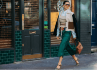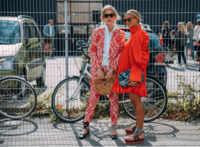 白色与橘色的配搭充满甜美而活力十足的女人味,如同泼墨一般的印花图案更是街头气息满满,搭配简约的白衬衫使得整个造型不会过度花哨。