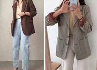 西装是秋天姑娘们选择最多的外套,,要想穿得稳重又有高级感,可以从格纹、驼色系列的色彩选择!彩色调子的有点跳的感觉!