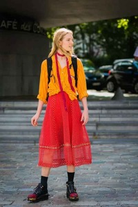 连衣裙搭配短靴,那就很省心了,女人味的连衣裙和帅气短靴的碰撞,能有怎样耀眼的火花?