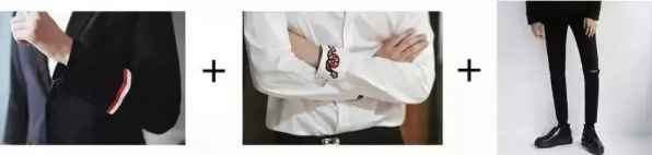 贴身的白色衬衣透露着一丝禁欲的气息,搭配剪裁得体的韩版西装,手臂处的颜色处理十分出色。黑色长裤的搭配将整个下半生的比例拉高。十分显高。