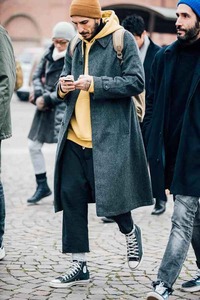 男生穿九分裤搭配小白鞋的组合是最常见的,因为小白鞋非常百搭,男女通吃,可以驾驭任何风格,无论是西服还是大衣,有了小白鞋的加入,,都能打破原有的严肃和正式感,注入些许年轻休闲的味道。