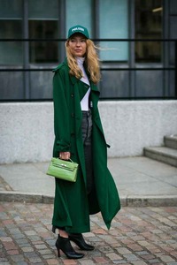 这类翠绿色在绿色环中相对于比较抢眼,秋天用黑色来吸收掉一些张扬,为全身LOOK注入一点“沉重”感觉更是适合哦。