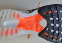 此外这款跑鞋是一双介于缓震与竞速之间的训练鞋,中底缓震可以是选用的阿迪达斯的全掌的 Lighstrike 科技。相比 Boost 材料,Lighstrike的重量要更轻。