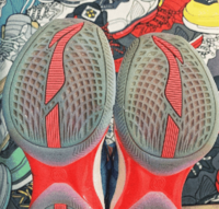 看似水晶底的大底,实际硬度很硬,在前后掌内侧有设计了纹路,有助于变相的脚内侧与地面接触,增加摩擦力。实战10场5内5外,鞋底除开磨掉了颗粒感那层,大体没有严重磨损,预估耐磨还是可以的。