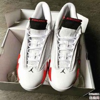 再来看一下实物图,小编在看了一圈之后就确定了上面的想法,这次AJ14白红复刻全细节曝光跟AJ14 “Candy Cane”白红配色还真就每点儿都一样。