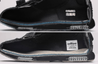 鞋底是很简单直接的人字纹,很粗犷,但摸着有点软,感觉应该没有想象中耐磨,前掌在纹路里面其实还有三道凹槽,方便弯折。