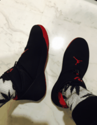 除了趣流网小编买的这款火箭配色,还有这双黑红配色也是相当好看的