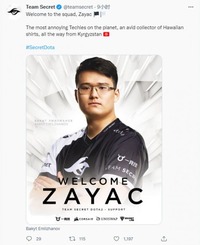 《DOTA2》秘密战队官宣四号位选手YapzOr(鸭脖子)转入不活跃状态,,由试训的吉尔吉斯斯坦选手Zayac顶替。