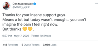 谢谢大家的支持,这意味着很多。然而今天还是不够……你无法想象我现在有多难受。