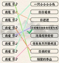 进击的汉字我爱的歌怎么过关?这个关卡都是我是和我爱开头的歌,右边也是一些很常见的歌曲,直接右边一个一个点就好了,正确的会自动连线。下面是小编给大家带来的进击的汉字我爱的歌通关攻略,还没有过关的小伙伴们一起来看看吧,给大家一个参考。