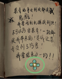 2、拿起桌上的册子,有笔记本以及鹿皮,最后一页有蓝扣子;